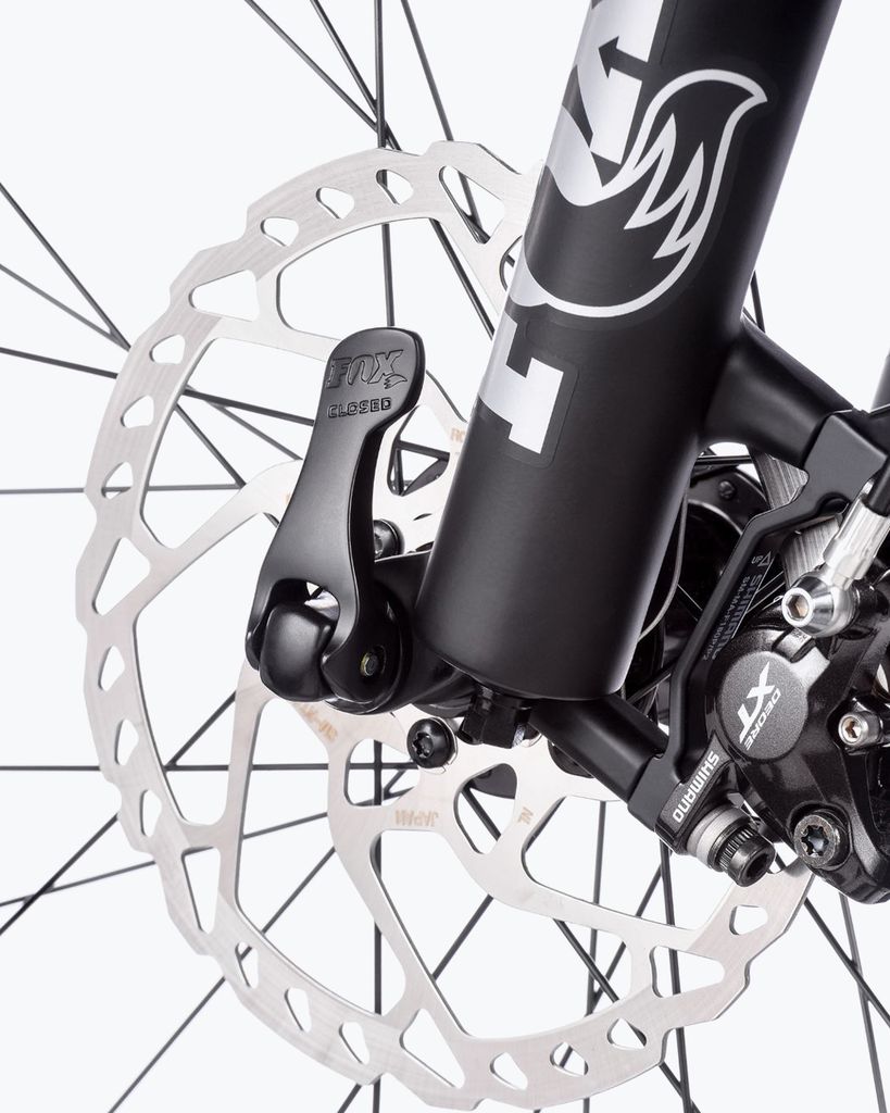 - Phanh xe đạp là nơi đảm bảo sự an toàn cho người lái. Nếu bạn là người mới bắt đầu chơi xe đạp chắc chắn rằng bạn sẽ băn khoăn có nên mua xe có phanh đĩa? Phanh đĩa thường được sử dụng cho xe đạp địa hình MTB, khi bạn bóp tay thắng, áp suất sẽ truyền qua chất lỏng phía bên trong dây phanh xuống heo dầu. Do áp suất này lớn nên gây ra lực làm cho piston di chuyển ép 2 miếng gôm thắng kẹp vào niềng với lực bóp phanh không quá lớn. Vì vậy mà phanh đĩa sẽ cho cảm giác nhạy và thắng tốt hơn, xe dừng lại nhanh hơn. FORNIX F3 được trang bị thắng đĩa dầu bánh trước và bánh sau sẽ giúp cho chiếc xe an toàn hơn cho người lái.